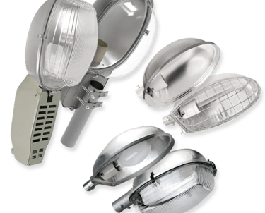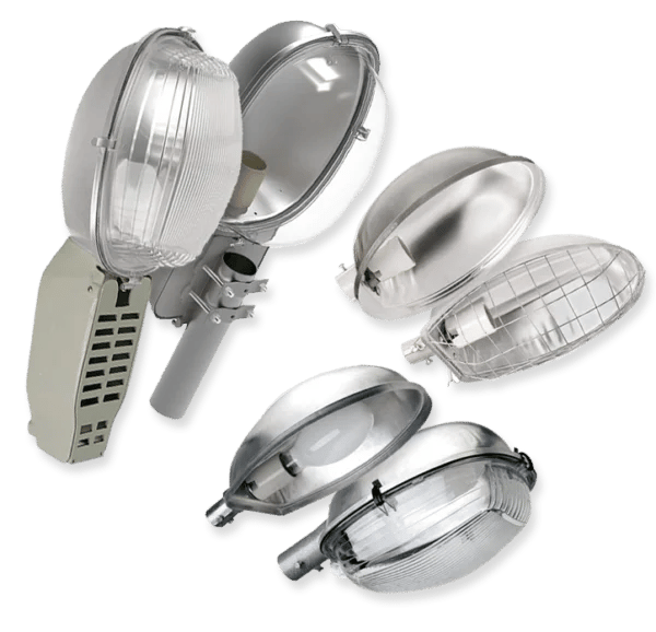 Luminária de uso geral externo fechada, com ou sem alojamento integrado para equipamento auxiliar. Corpo em alumínio injetado.