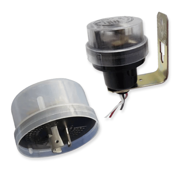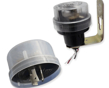 Relé fotocélula convencional para base, liga a luz ao anoitecer e desliga ao amanhecer. Contato tipo NF ou NA.