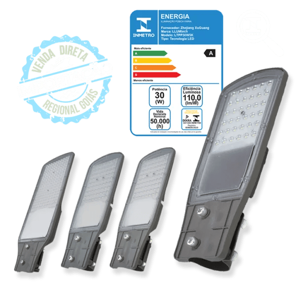 Luminária pública Street Light LED, design moderno, estrutura robusta adequado ao tipo de ambiente e utilização. Indicado para utilização em áreas externas de circulação, estacionamento e principalmente iluminação pública (produto certificado).